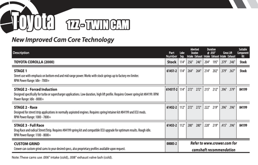 Crower Stage 2 Camshafts for 1ZZ, 61452-2 (Discontinued)